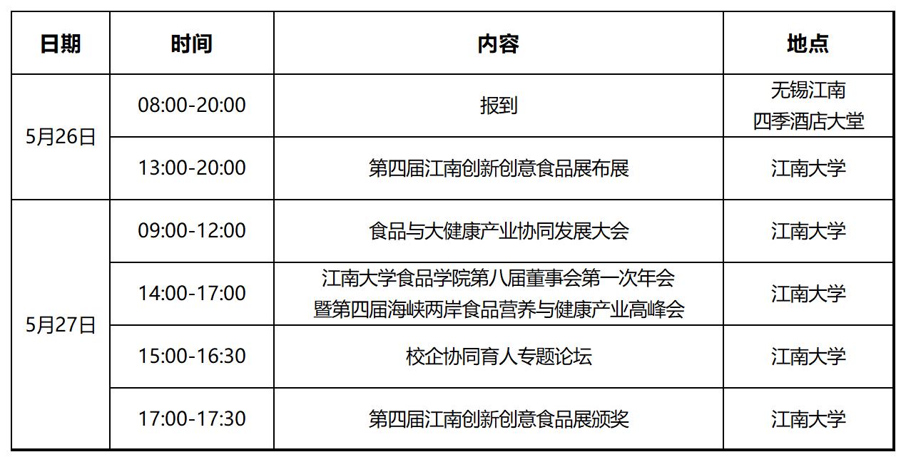 第八届董事会第一次年会。年会期间举办系列活动,将邀请来自政府、学界、企业的权威专家作专题演讲和分享报告,同时设置“食品企业质量安全检测技术示范中心”分中心评选,新增董事会成员单位授牌、第四届江南创新创意食品展等环节,诚邀贵单位参加。