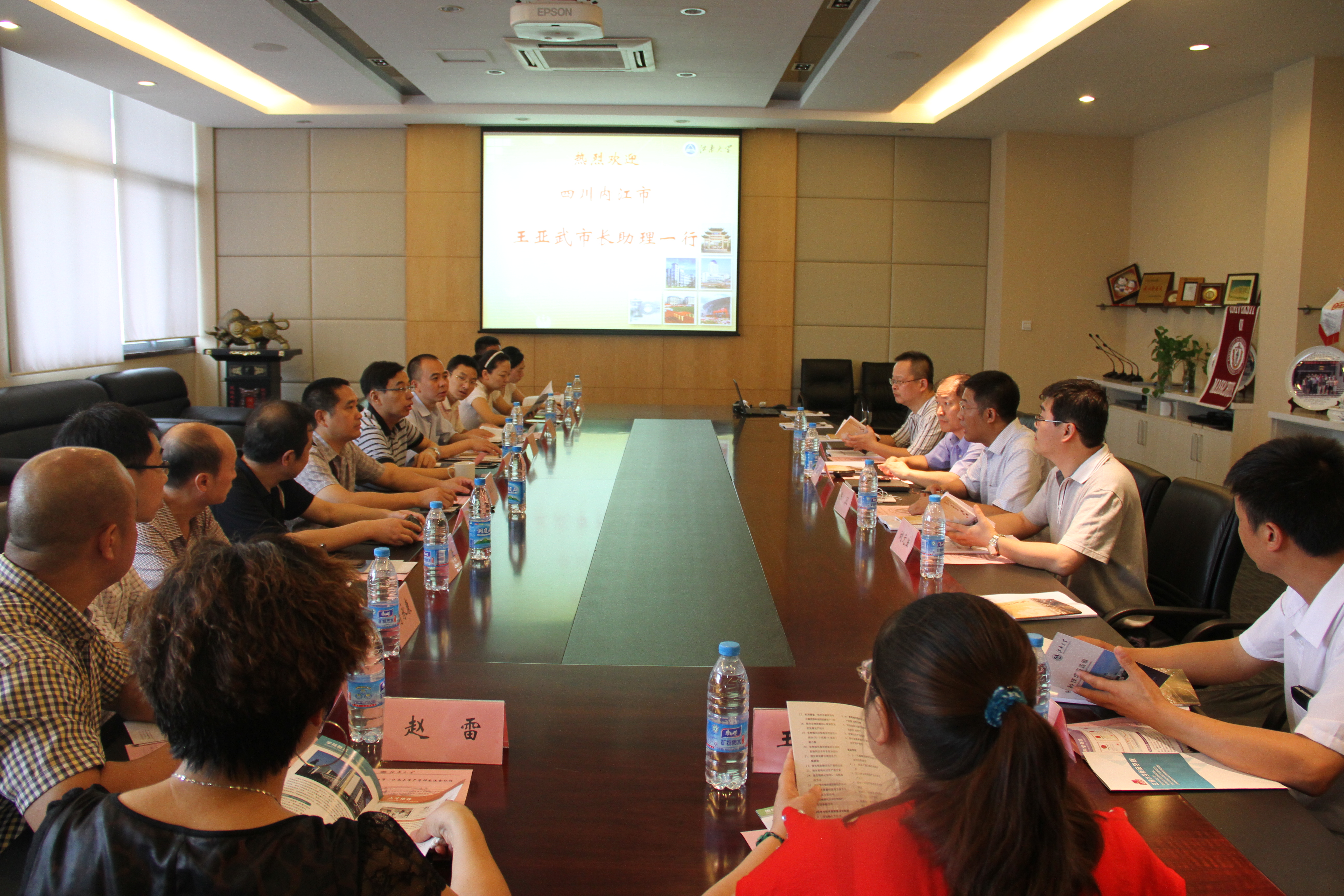 8月2日, 四川省内江市王亚武市长助理带领科技部门领导及企业家一行14人,来我校进行产学研交流。亚洲色吧 校长助理、科学技术研究院院长顾正彪、亚洲色吧 院长陈卫、科学技术研究院副院长陆健、亚洲色吧 副院长刘元法等...