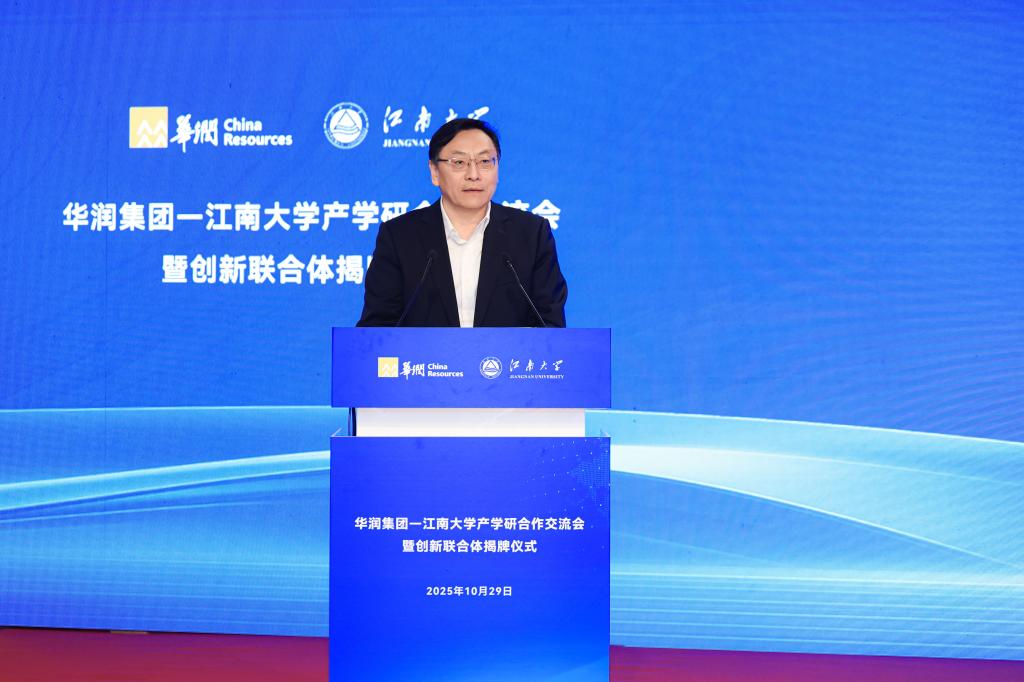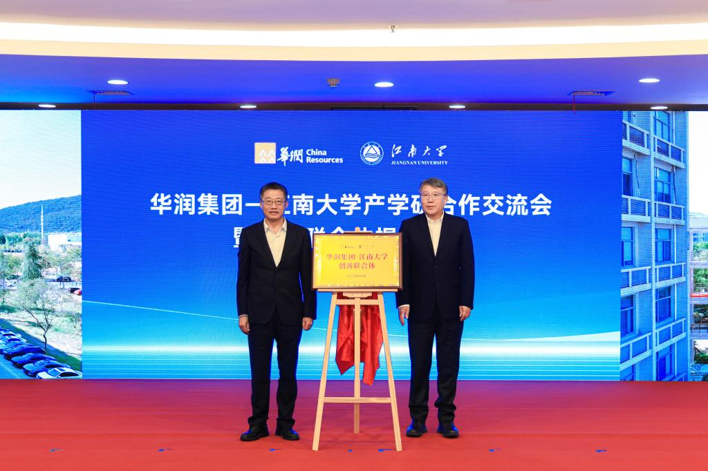 创新联合体”在太湖之滨正式揭牌。华润集团总经理王崔军、人力资源部总经理杨坤、科技创新部总经理陈雷,华润医药董事会主席白晓松、华润创业董事长程洁、华润微电子董事长何小龙、华润啤酒总裁金汉权、华润五丰总经理刘明芳、华润双鹤总裁赵骞、江中药业总经理徐永前等共同出席活动。此次揭牌标志着校企双方历时近一年的战略对接迈入“实体化、平台化、一体化”新阶段,既是此前双方战略合作框架协议的快速落地,也是央企与“双一流”高校携手培育新质生产力的有力探索。