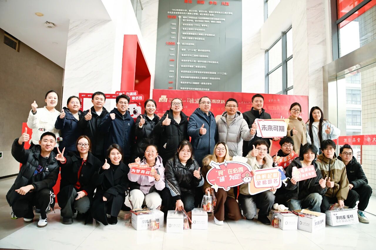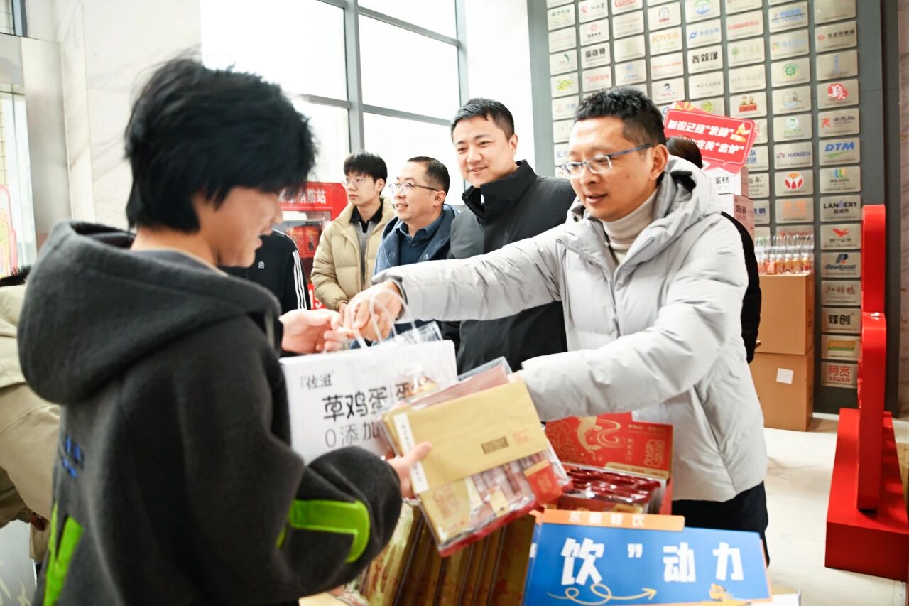 一楼大厅洋溢着融融暖意。学院党委副书记、副院长陈勇,副院长、食科2202班班主任程力,副院长柏玉香及全体辅导员一同为“研”途路上认真备考的学子们送上暖心补给和真挚祝福。“最后阶段,既要全力以赴,也要保重身体”“把握节奏,一定上岸!”一句句朴实的叮咛、一声声真诚的鼓励,如冬日里的暖阳,驱散备考的疲惫,坚定了学子们冲刺的决心,跑赢考研这场“马拉松”。